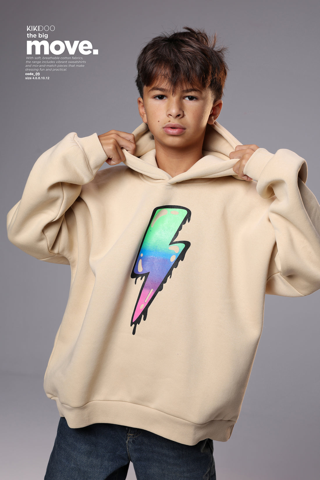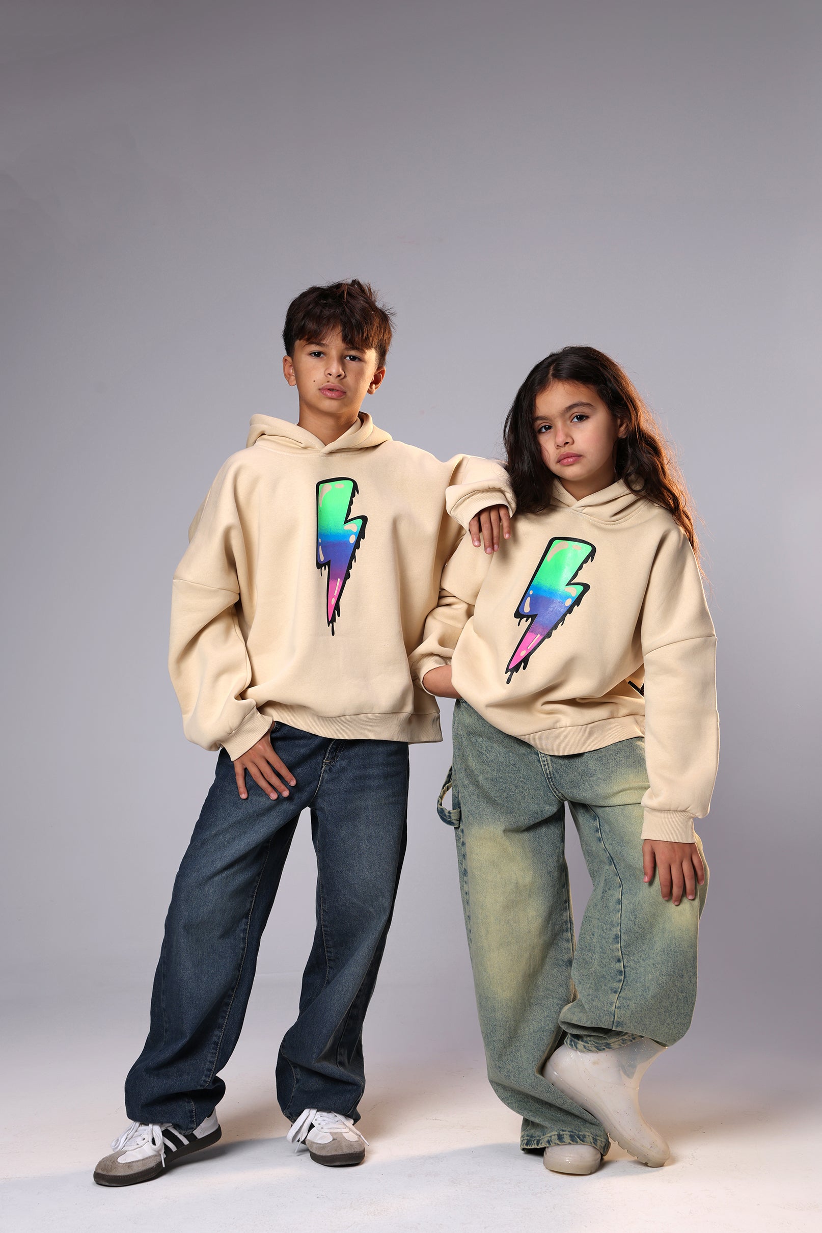 Graffiti Lightning Hoodie beige – Bold Energy, Urban Vibes