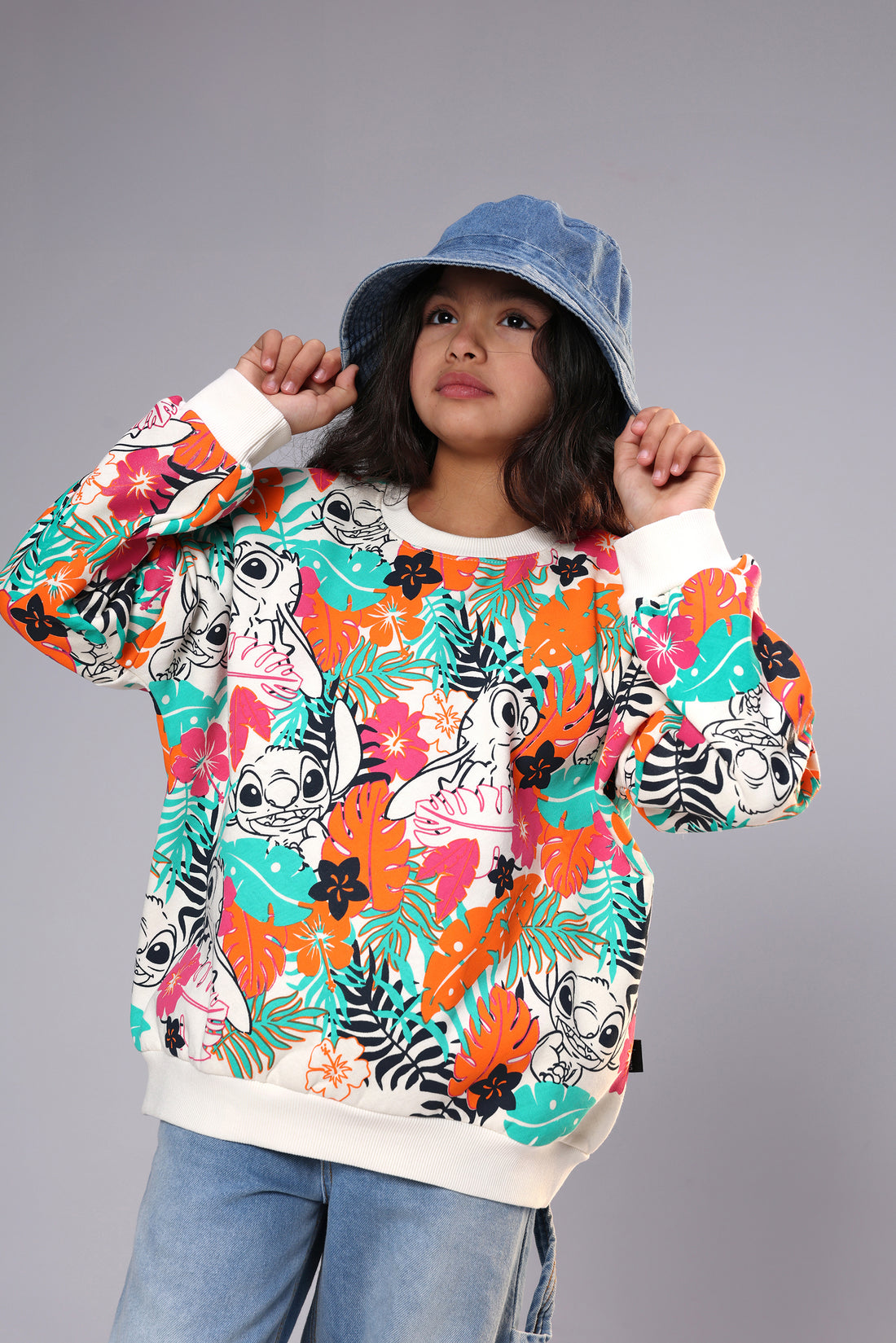 Girls Colorful Stitch Sweatshirt – Vibrant & Playful Tropical Print