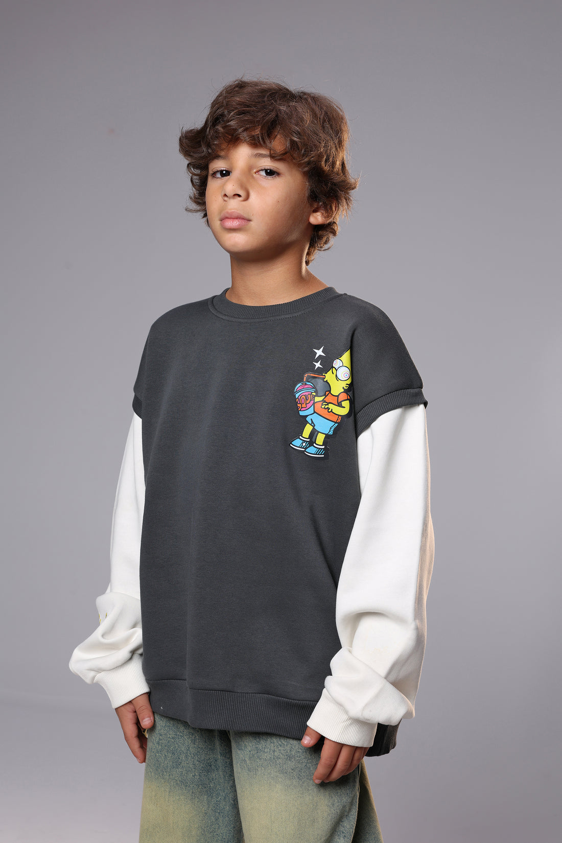 Boys Two-Tone Sweatshirt with Cartoon Print – Funky Street Style