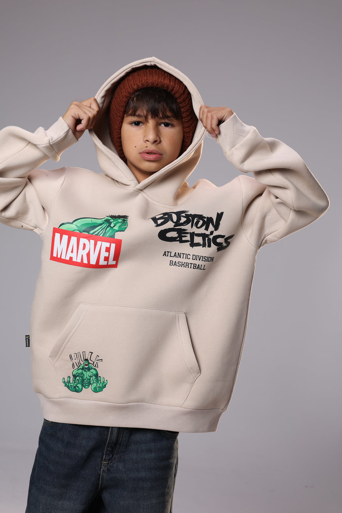 Boys’ Marvel x Boston Celtics Oversized Hoodie – Beige