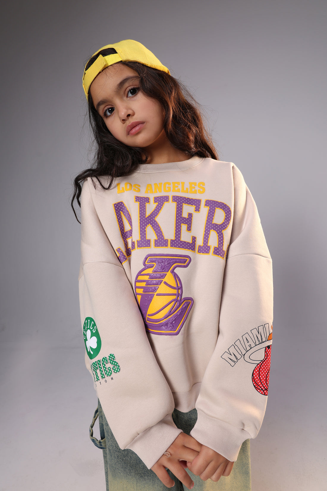 Bring sporty energy to your boy’s look with this LA Lakers oversized sweatshirt from Kikidoo....