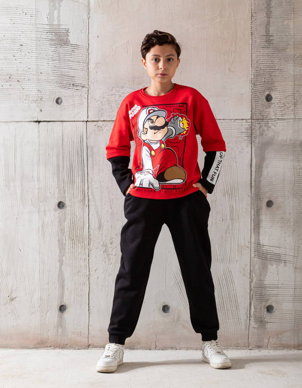 Boys’ Super Mario Sweatshirt Set – Red & Black Adventure Edition