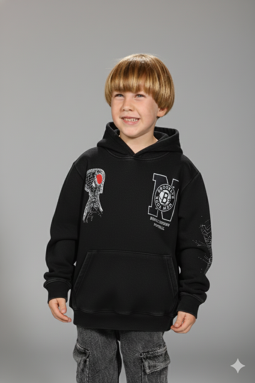 Step into bold streetwear energy with this black Hero Hoodie from Kikidoo. Designed in soft...