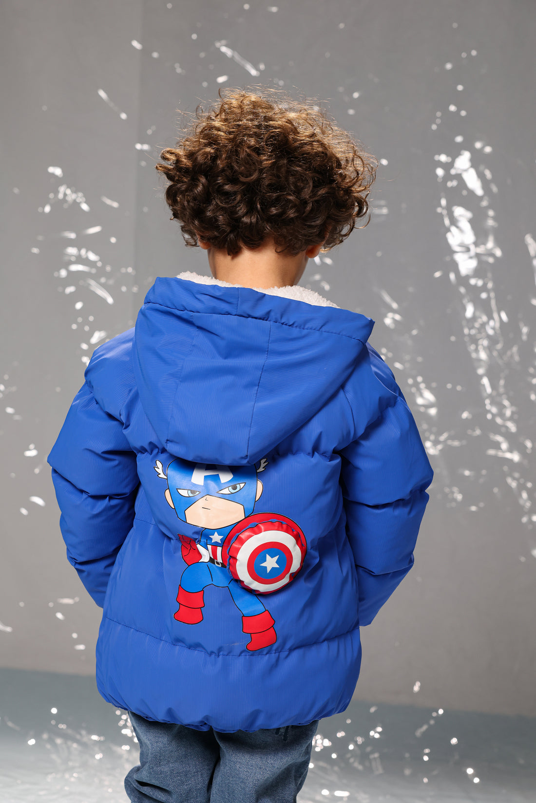 Kids Premium Captain America Puffer Jacket – Ultra-Warm, Water-Resistant & Cozy Sherpa Lining