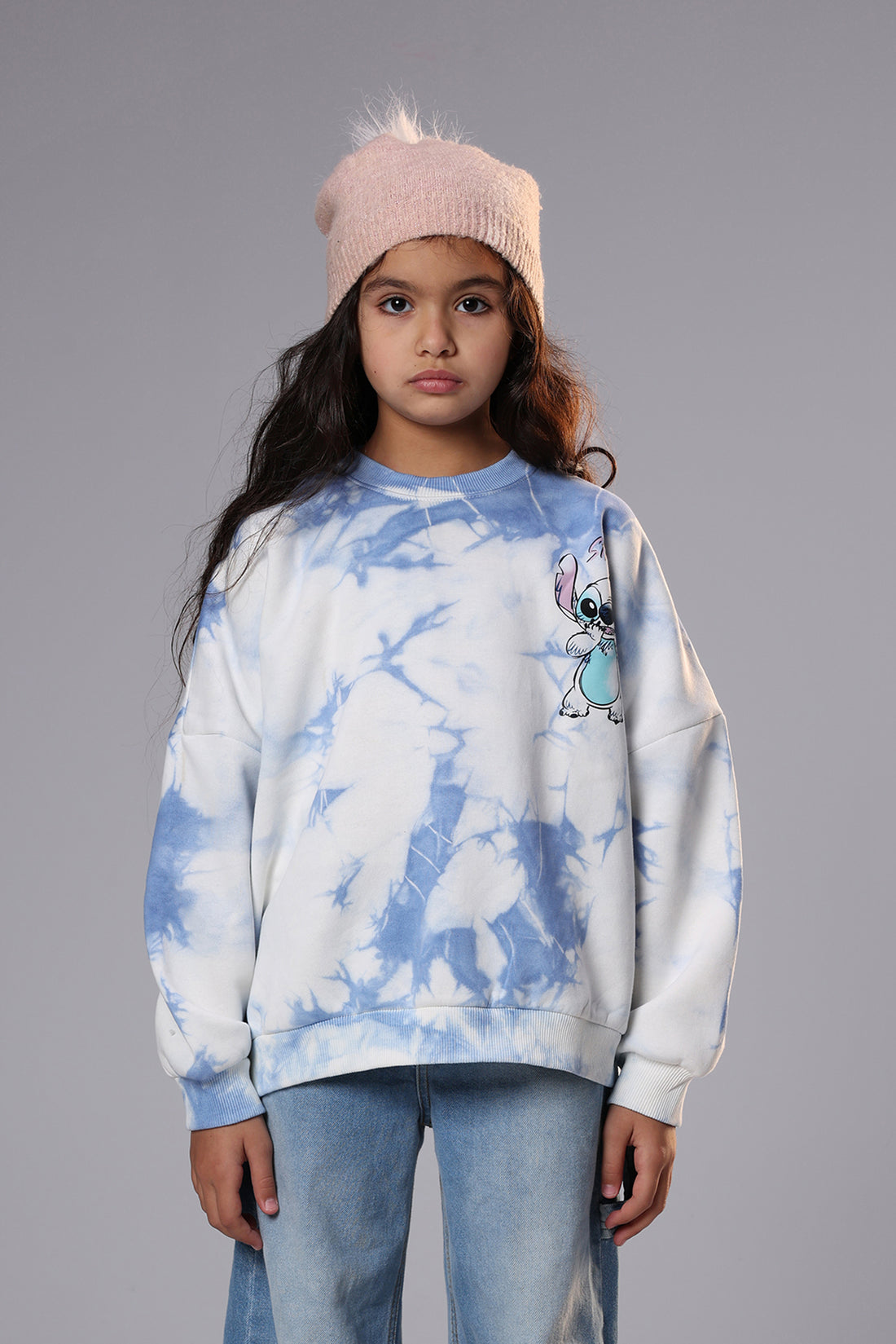 Girls’ Stitch Tie-Dye Sweatshirt – Blue & White