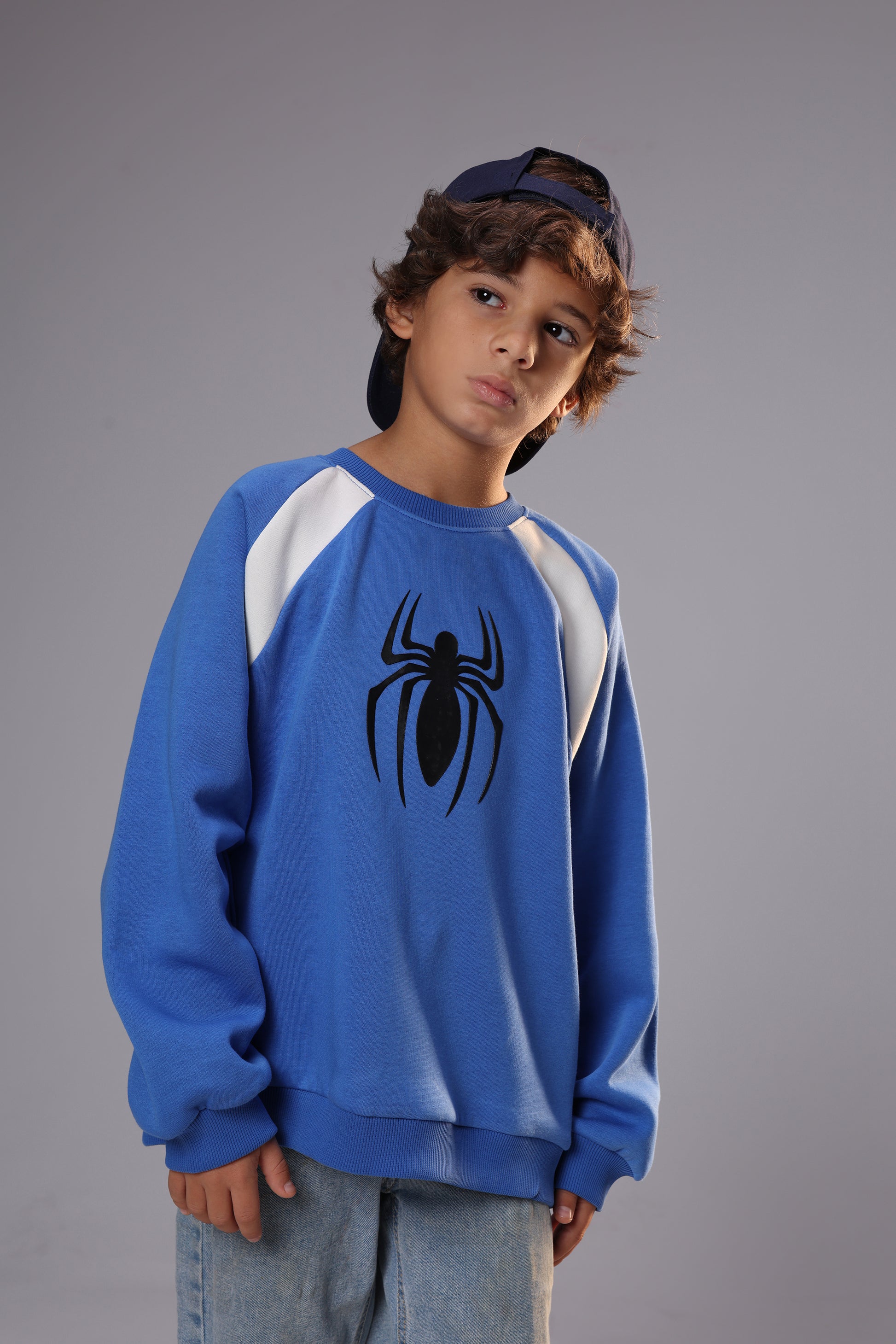Unleash his inner hero with this bold blue Spider Sweatshirt from Kikidoo. Designed with soft, breathable cotton fabric and a striking black spider emblem, it combines comfort and attitude in one look. Perfect for casual days, because every move deserves style.