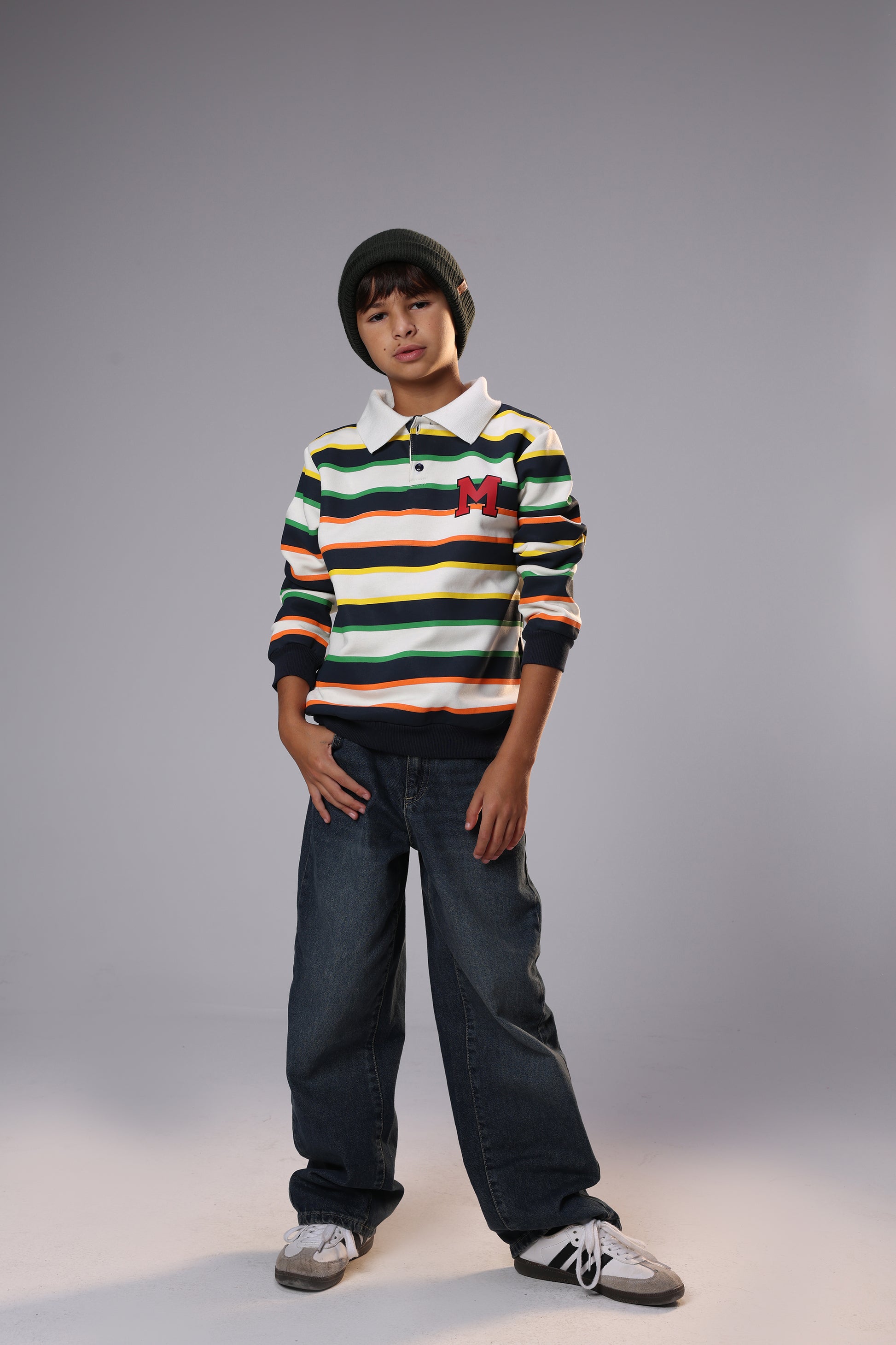 This Kids Striped Polo Sweatshirt combines classic style with everyday comfort. Designed with colorful horizontal stripes and a clean polo collar, it creates a smart-casual look that’s perfect for school days or weekend outings.
