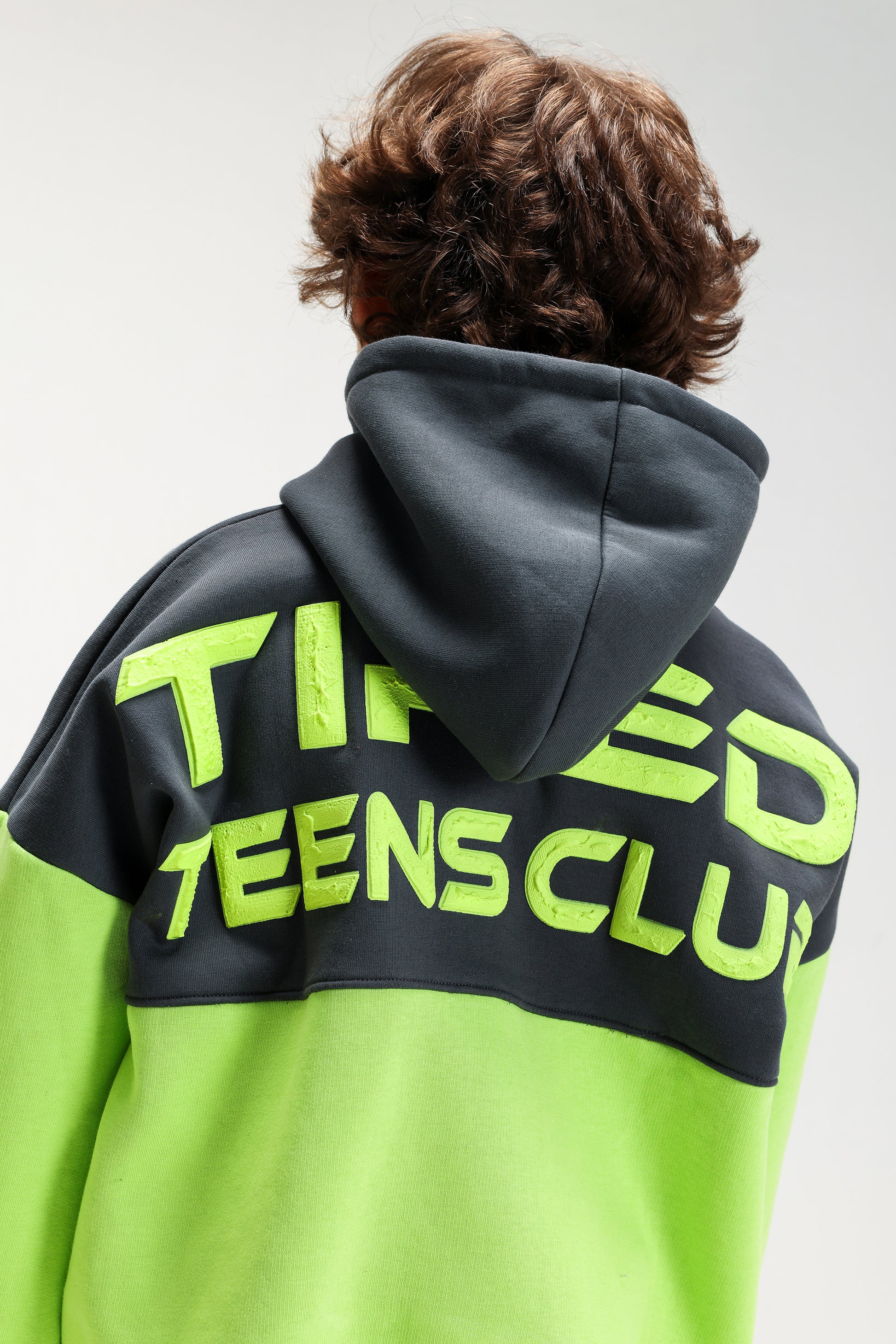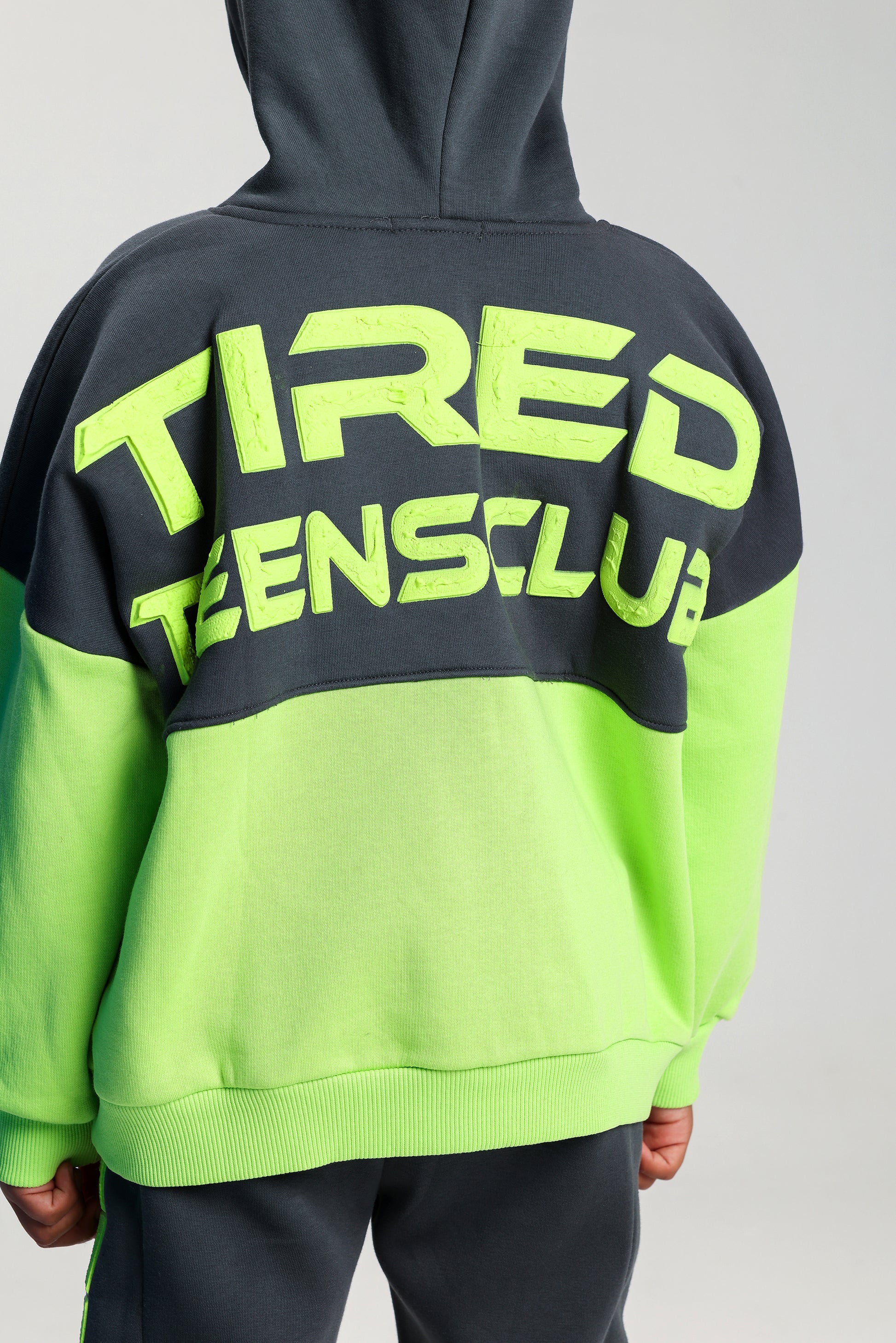 Boys’ GREY & LEMON Melton Cotton Winter Tracksuit – “Tired Teens Club” Printed Hoodie & Pants Set