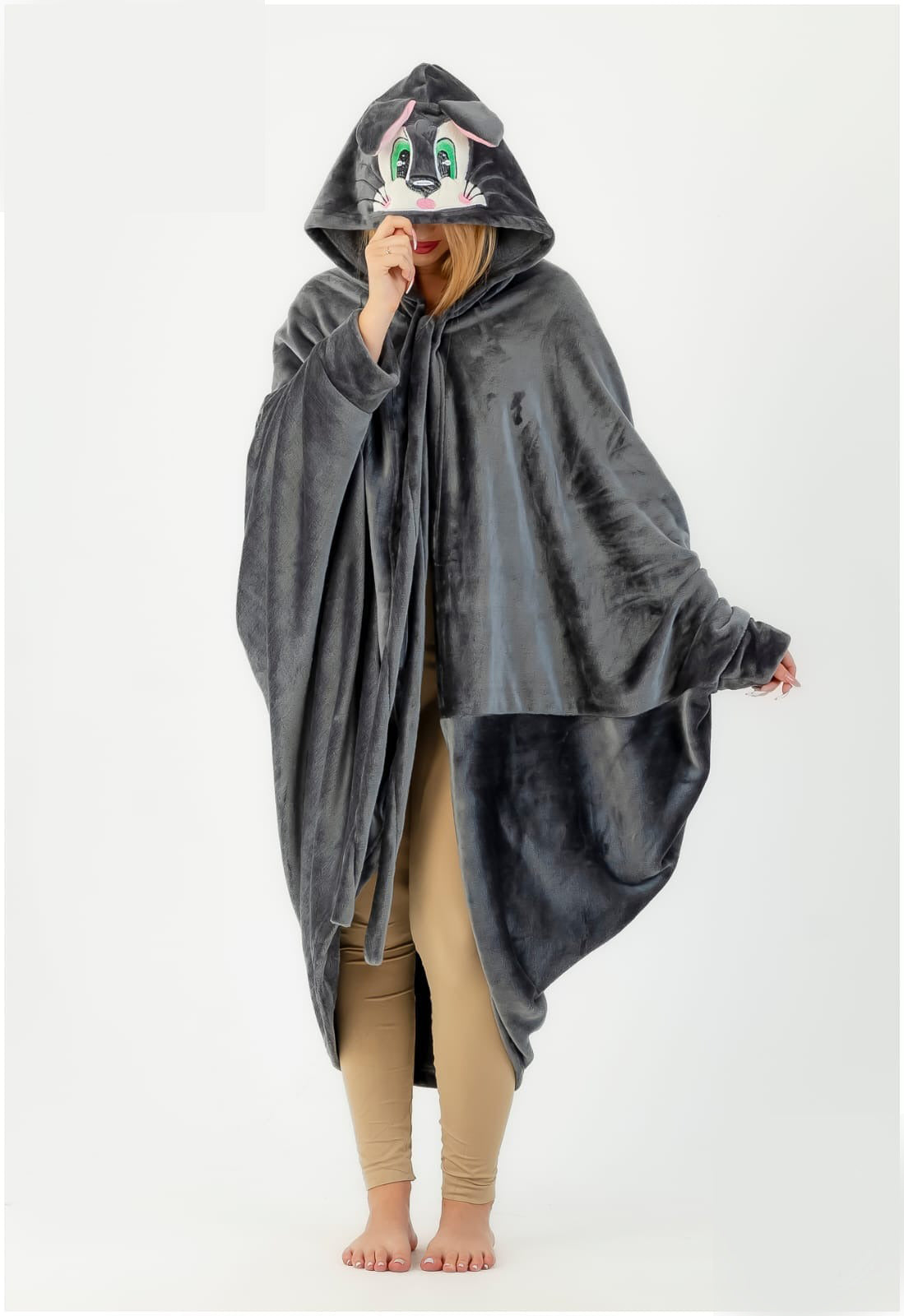This adorable bunny hooded blanket is designed for maximum comfort and fun. Made from ultra-soft fleece fabric with a cute cartoon bunny face on the hood, perfect for relaxing at home, watching TV, or sleeping cozy.