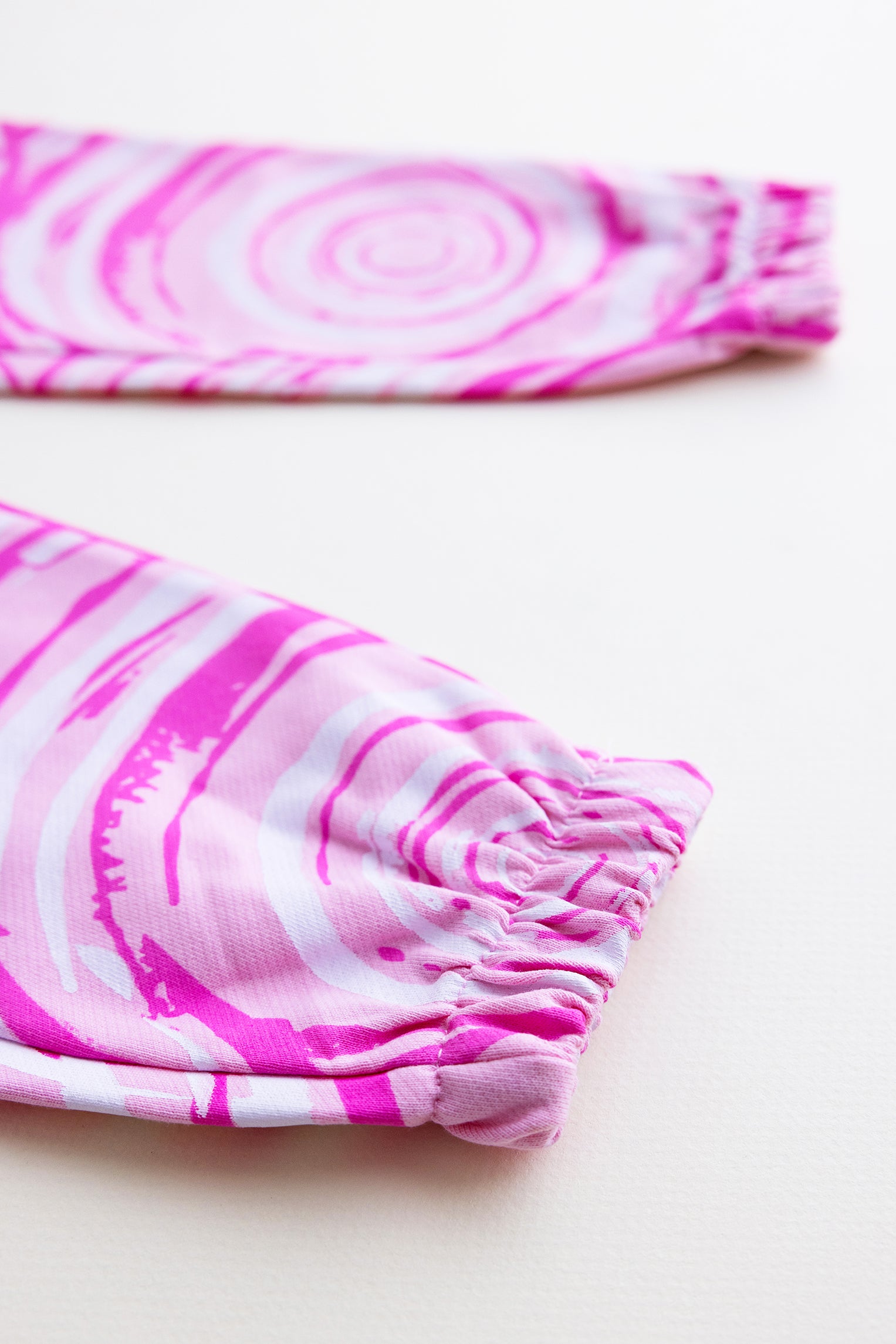 Brighten up her sporty style with this bold girls’ activewear set. The soft black tee features a playful flower graphic, perfectly matched with high-waisted pink marble leggings for a fun and comfy everyday outfit.
