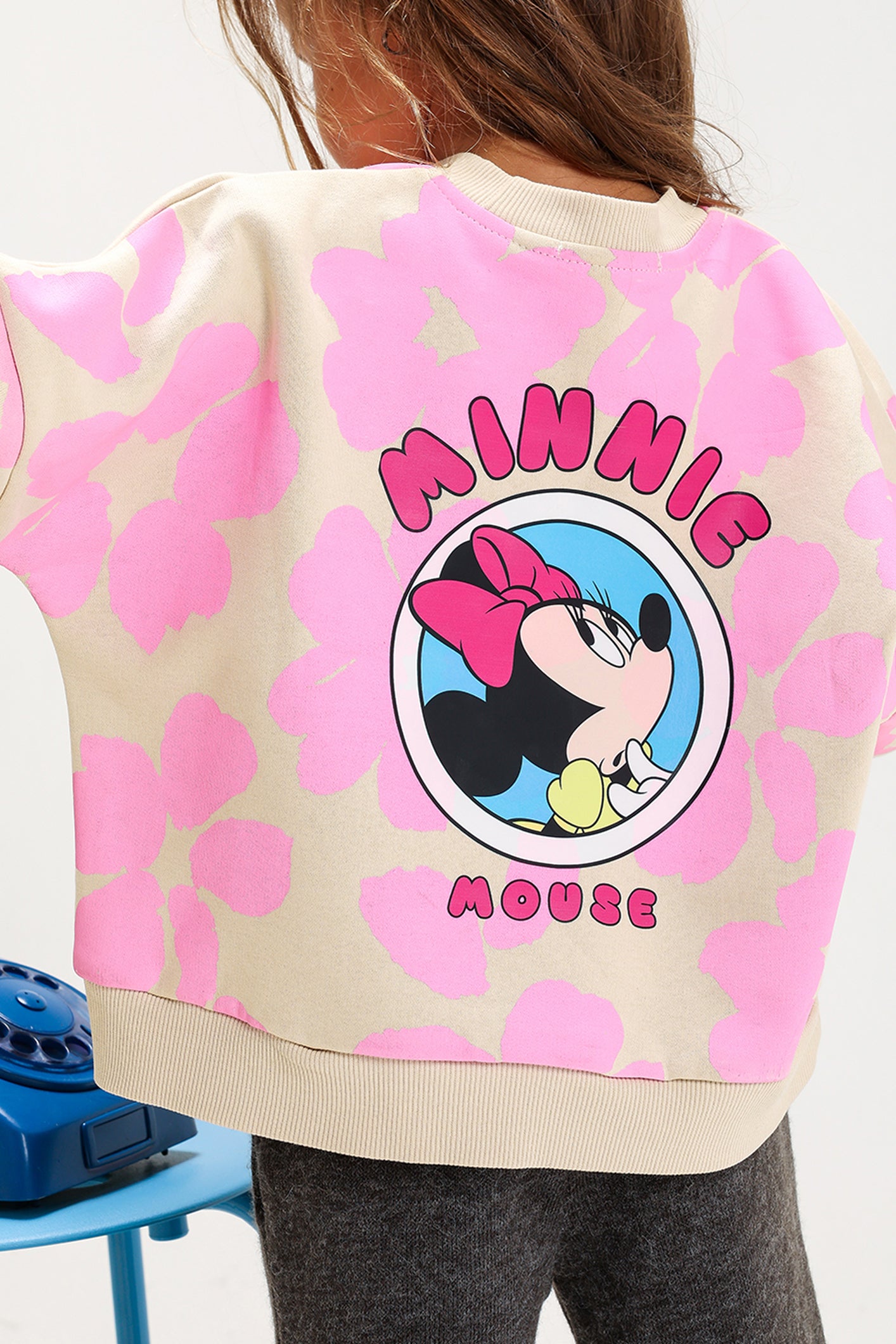 Girls’ Minnie Mouse Melton Cotton Winter Outfit – 2-Piece Sweatshirt & Wide-Leg Pants Set (Beige & Pink)