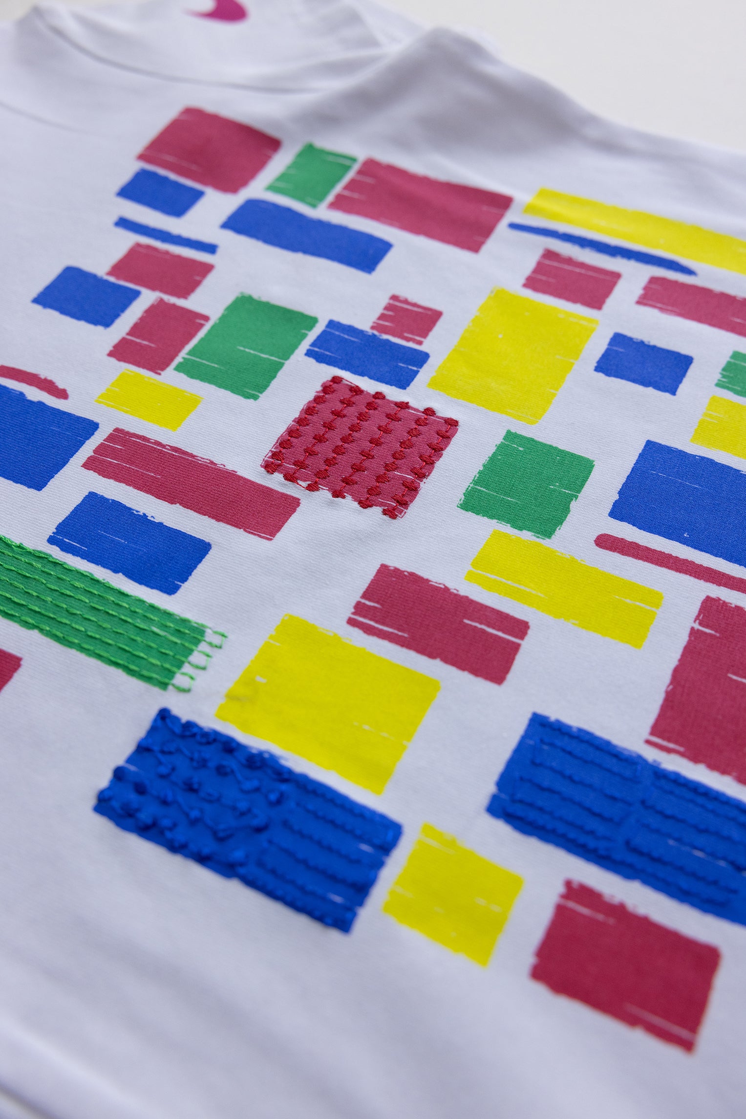 Girls’ Nike Color Block Set – White Graphic Tee & Black Rainbow Swoosh Leggings