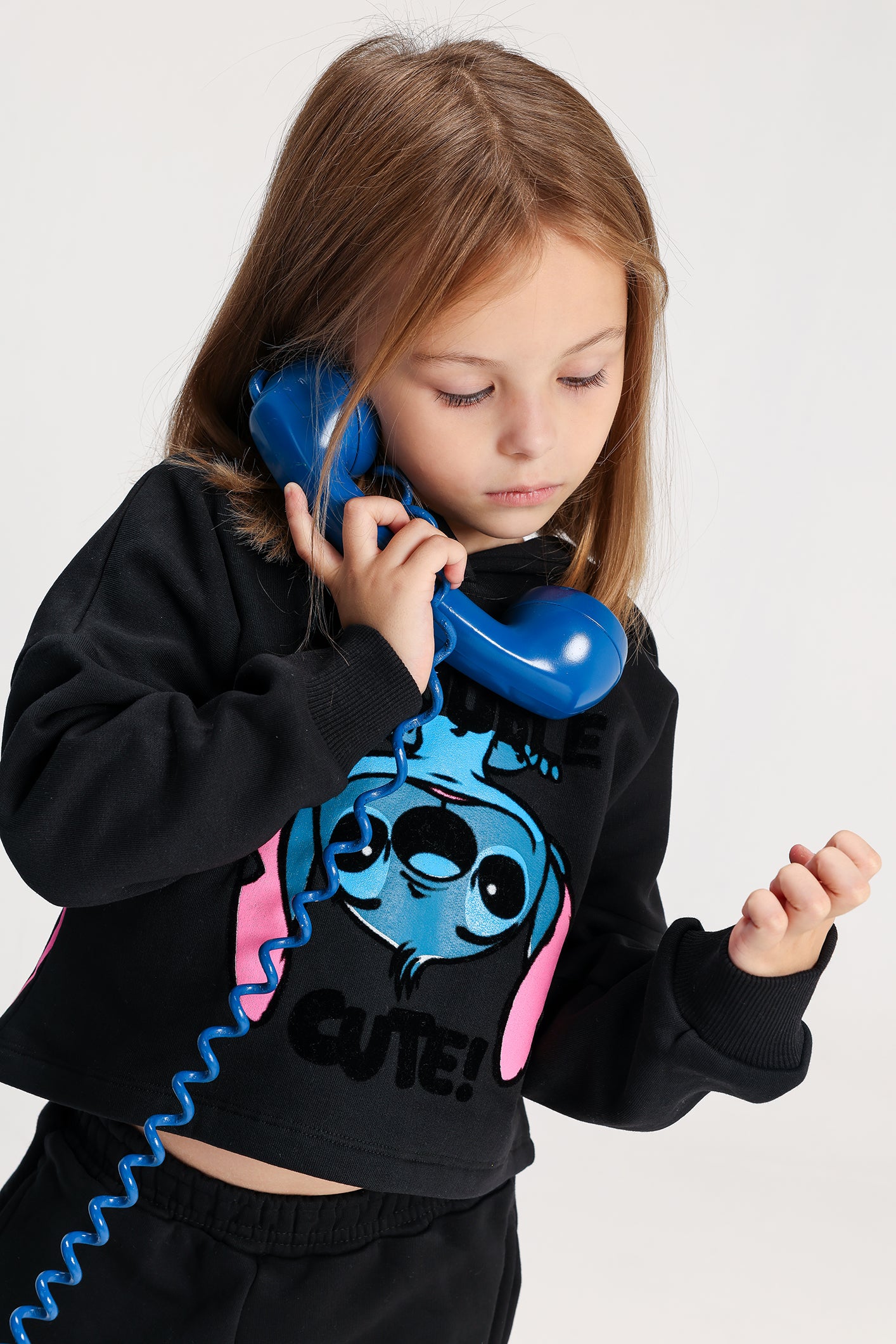 Let your girl stay warm and stylish with this Stitch cotton tracksuit. The 2-piece black set features a soft hoodie with a fun Stitch print and matching jogger pants with pink “OHANA” details. Made from high-quality cotton for ultimate comfort, warmth, and a trendy winter look — perfect for school or everyday wear.