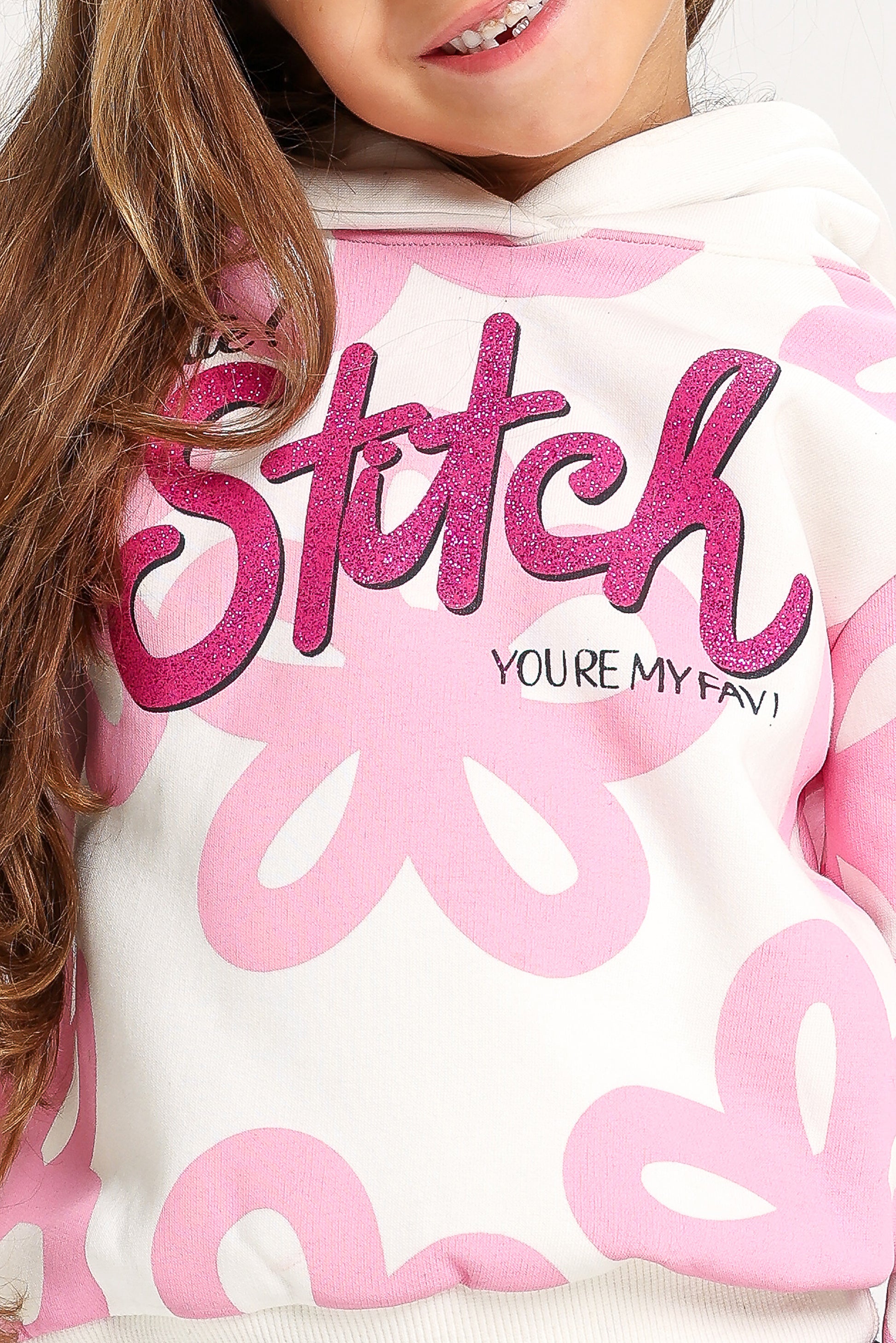 Keep your girl cozy and stylish with this Stitch cotton winter tracksuit. The 2-piece set features a white hoodie with pink prints and soft black pants for a trendy everyday look. Made from high-quality cotton for warmth and comfort — perfect for school, play, or winter outings.