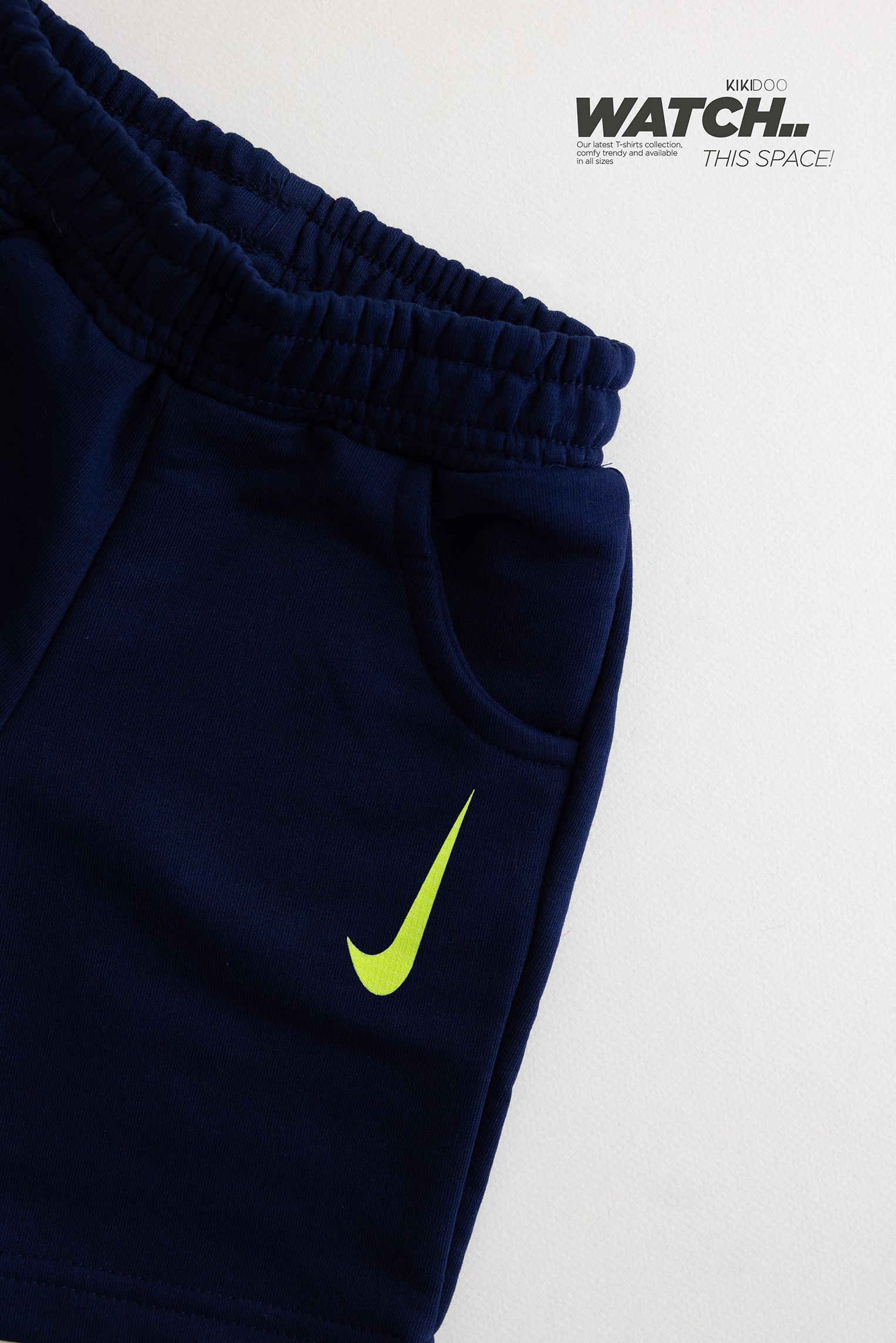 Let your boy stand out in style with this trendy white t-shirt featuring a bold blue sneaker graphic. Made from soft, breathable cotton for all-day comfort, paired with navy cotton shorts perfect for active play or casual outings. A fun and fresh look for everyday wear.